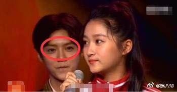 Lộc Hàm dịu dàng nhìn Hiểu Đồng trong một sự kiện.