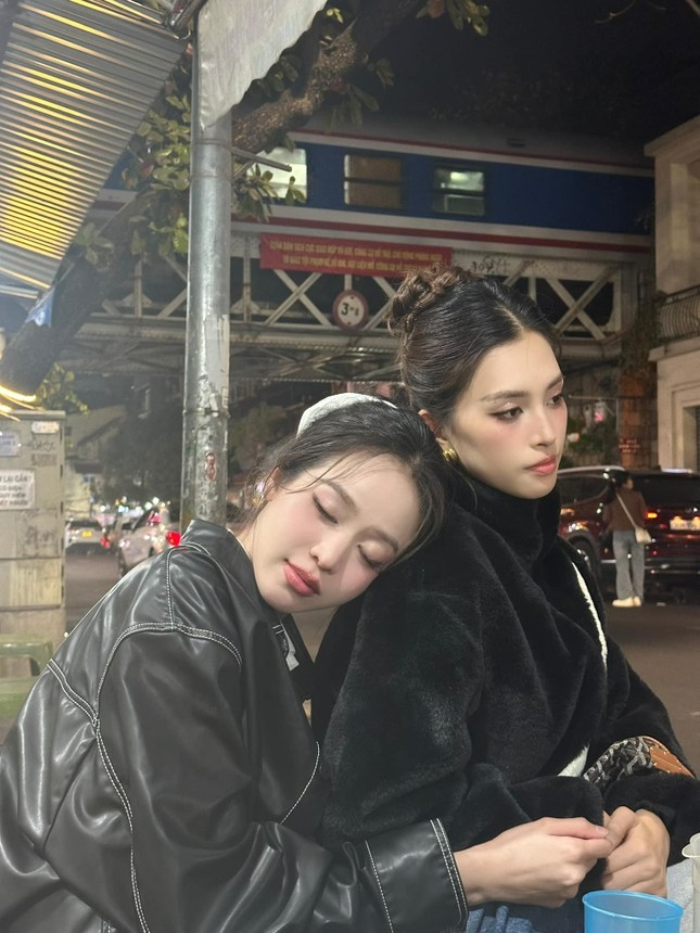 Ở cuộc sống đời thường, hai nàng hậu càng mặc giống nhau nhiều hơn. Trong lần ra Hà Nội dự buổi họp báo giới thiệu cuộc thi Hoa hậu Việt Nam 2024, Thanh Thủy với Tiểu Vy đều kết hợp áo khoác đen và quần jeans xanh để khám phá ẩm thực Hà Nội.