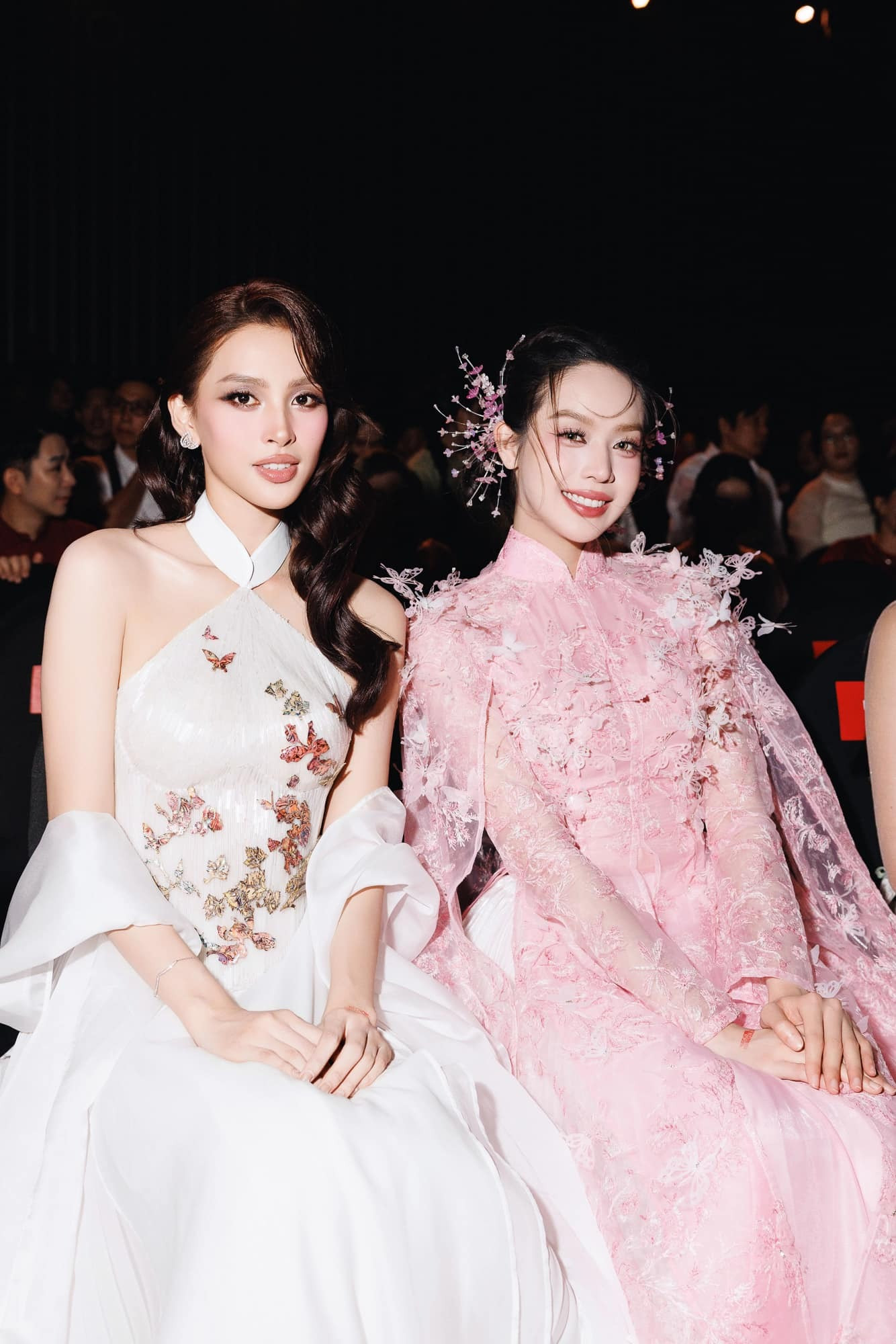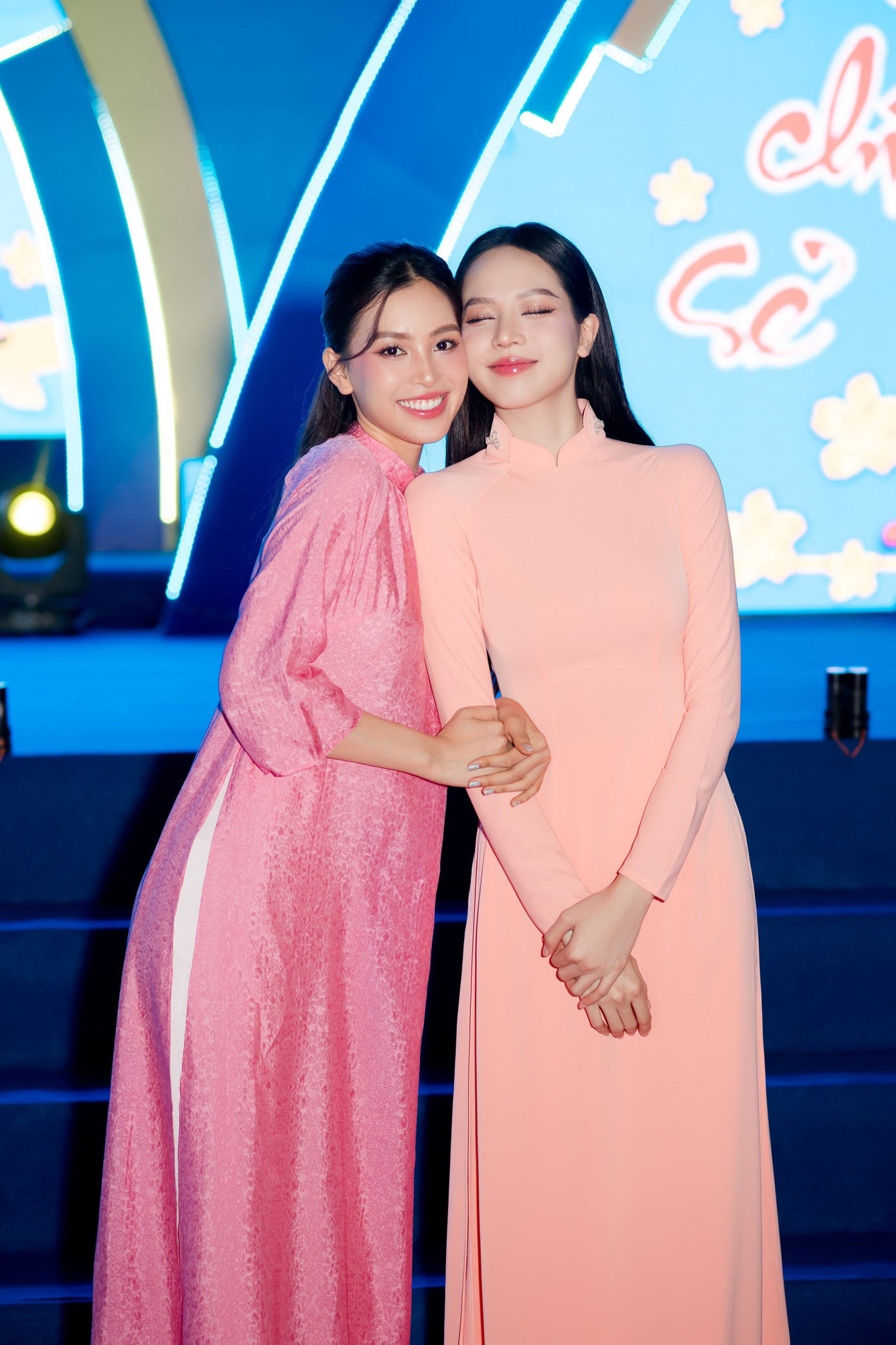 Sở hữu đường nét tương đồng thôi chưa đủ, hai Hoa hậu Việt Nam còn rất thích mặc đồ đồng điệu mỗi khi cùng xuất hiện. Không chỉ mặc áo dài cùng tông hồng, Thanh Thủy với Tiểu Vy đều để tóc xõa, đến màu son cũng giống nhau khiến khán giả suy đoán hai cô gái trang điểm cùng một nơi.