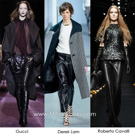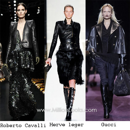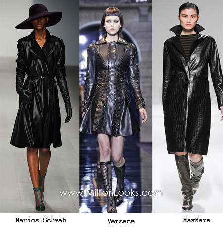 Chiếc áo khoác da màu đen là một item rất hữu dụng cho mùa lạnh khi những cơn mưa bất chợt là một hiện tượng bình thường. Áo khoác da cho mùa Thu – Đông 2012 được thiết kế theo kiểu dáng chữ A hơi xòe phía gấu áo hoặc chữ X khi kết hợp với thắt lưng để khoe trọn chiếc eo thon. Những thiết kế này thường dài đến ngang đầu gối. Kết hợp chúng với bốt cao cổ sẽ mang đến cho bạn một phong cách quý phái và lịch lãm.