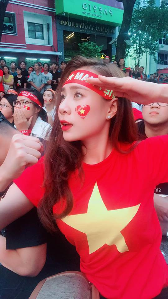 “Thay avatar cờ nước, viết cái gì cũng phải thêm hashtag #VietNamVoDich vào. CĐV ta có một kiểu hô khẩu hiệu rất lạ kỳ. Cứ một người hô Việt Nam, đám đông hô lại “vô địch”. Đá với... Campuchia, Lào cũng hô Việt Nam vô địch. Đá giao hữu với Olympic Brazil cũng Việt Nam vô địch, đá tranh huy chương Đồng cũng Việt Nam vô địch… Nhưng bây giờ, cơ hội vô địch đang đứng trước mắt chúng ta. Một cơ hội rõ ràng, sáng tỏ.", Bích Trâm chia sẻ.