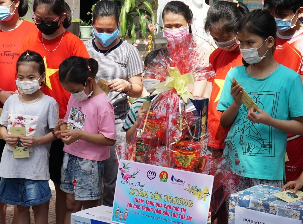 Nhân dịp Tết đến Xuân về, với ngập tràn sự sẻ chia tình yêu thương dành cho trẻ em có hoàn cảnh không may, chương trình đã trao tặng 127 suất quà (gồm bánh, kẹo và tiền mặt với tổng trị giá 42 triệu đồng) cho thiếu nhi thuộc các trung tâm bảo trợ trẻ em trên địa bàn tỉnh TT-Huế.