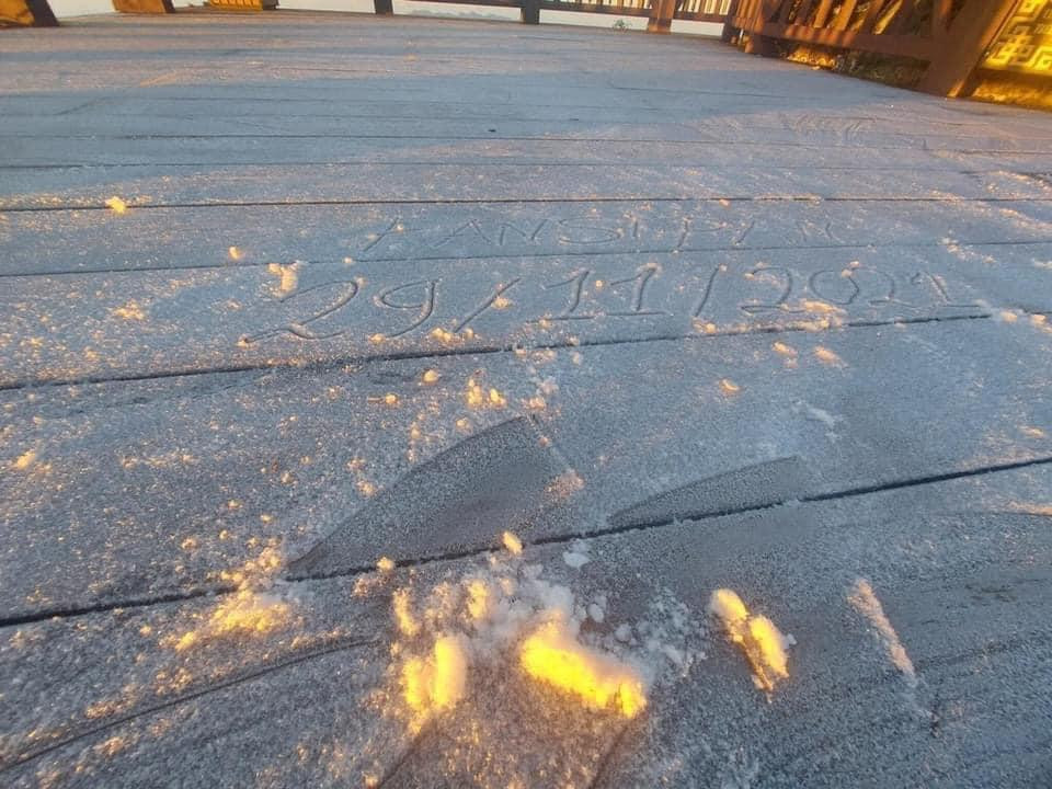 | Hình ảnh chụp lại tinh thể băng xuất hiện trên đỉnh Fansipan vào sáng nay 29/11. (Ảnh: Long Phạm, từ khu du lịch Fansipan). |