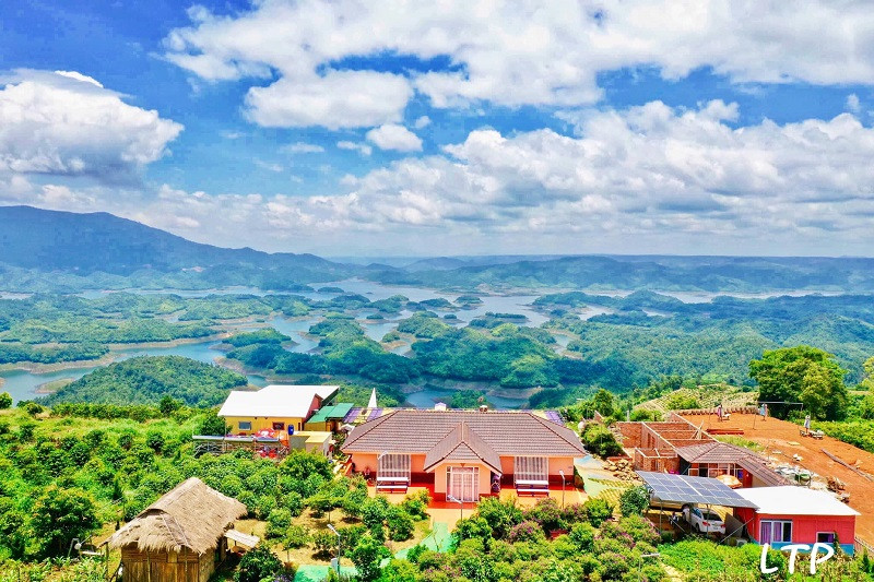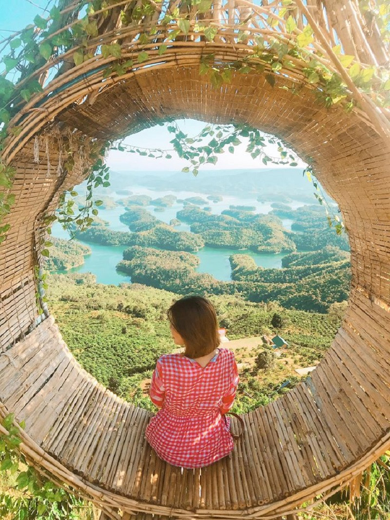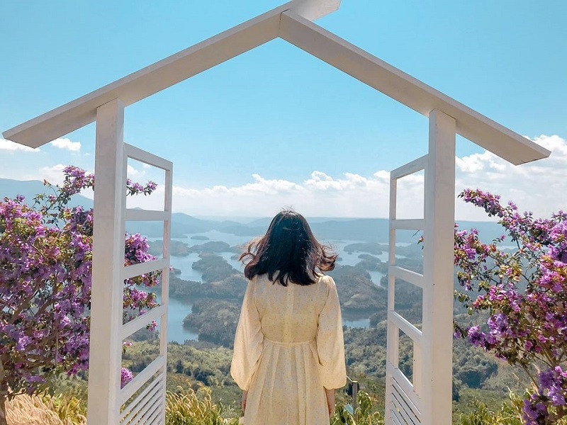 Từ trên cao nhìn xuống, bạn có thể thong thả phóng tầm mắt ra xa để thu vào trọn vẹn khung cảnh non nước hữu tình. Hoặc bạn cũng có thể đi thuyền lên lòng hồ và tận hưởng cảm giác khoan khoái giữa thiên nhiên. Địa điểm này còn có các tiểu cảnh phục vụ cho nhu cầu vui chơi, sống ảo của du khách như cầu kính, nấc thang lên thiên đường, tổ chim, cổng trời... Dọc đường đi Tà Đùng, các bạn có thể ghé thăm thác Liêng Nung hay nhà máy thủy điện Đồng Nai 3, thuộc xã Quảng Khê, huyện Đắk Glong, tỉnh Đắk Nông.
