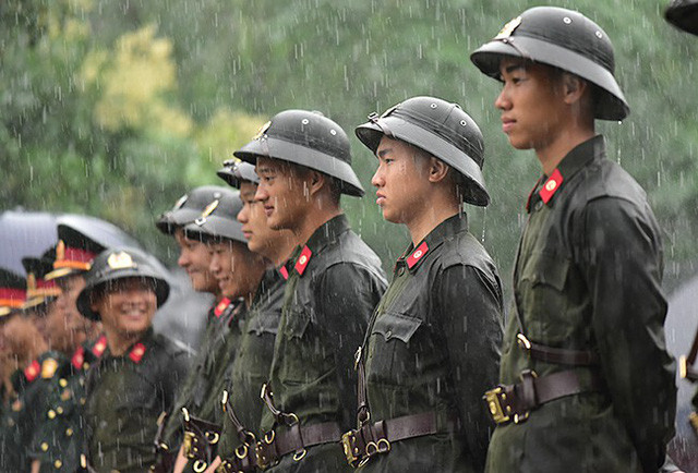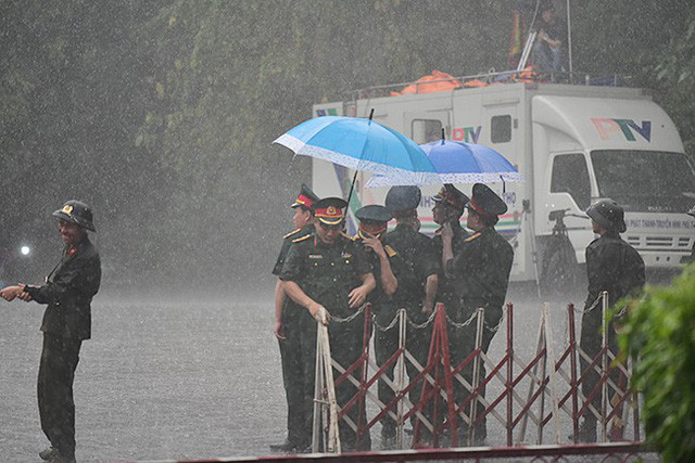 Rất nhiều chiến sĩ với chiếc áo ướt đẫm nước mưa khiến nhiều người cảm động.