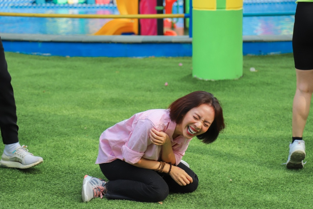 Chỉ đến lúc các đàn em phản đối quá nhiều, Tiến Luật mới cho Thu Trang thực hiện thử thách lăn lộn 3 vòng trên thảm cỏ. Những tưởng đến đây Thu Trang sẽ tìm được con số giấu trong các quả bóng, nào ngờ cô lại tiếp tục kém may mắn và chịu thêm 1 hình phạt khác. Khi nhận được yêu cầu hãy ôm hôn một người đàn ông đẹp trai nhất trong nhóm, Thu Trang chẳng ngại ngần tiến tới ôm hôn Tiến Luật.
