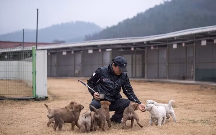Nhà Xanh (văn phòng Tổng thống Hàn Quốc) cho biết, tuần trước, Triều Tiên đã gửi 2 chú chó săn giống Pungsan quý hiếm cho ông Moon Jae-in như là một món quà thể hiện tình hữu nghị giữa 2 nước. Songgang (phải) và Gomi (trái) được chuyển qua làng đình chiến Panmunjom (Bàn Môn Điếm) ở Khu Phi quân sự (DMZ) giữa 2 miền vào ngày 27/9 vừa qua cùng với 3 kg thức ăn để giúp chúng thích nghi với ngôi nhà mới.