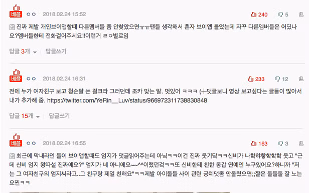 Ngay lập tức, Yerin đã đáp trả: “Tại sao mình là người tổ chức buổi livestream hôm nay mà các bạn cứ hỏi các thành viên còn lại đang ở đâu thế nhỉ? Có vẻ như các bạn không hài lòng lắm khi mình xuất hiện, các bạn chỉ mong thành viên khác lên sóng thay vì mình đúng không? Nếu các bạn tò mò, các bạn có thể hỏi 5 thành viên còn lại rằng họ đi đâu, làm gì với ai vào thứ 5 ngày 22 tháng 2 là được mà?”.