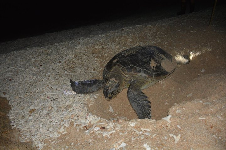Biệt đội may mắn gặp được một chú rùa vào buổi tối.